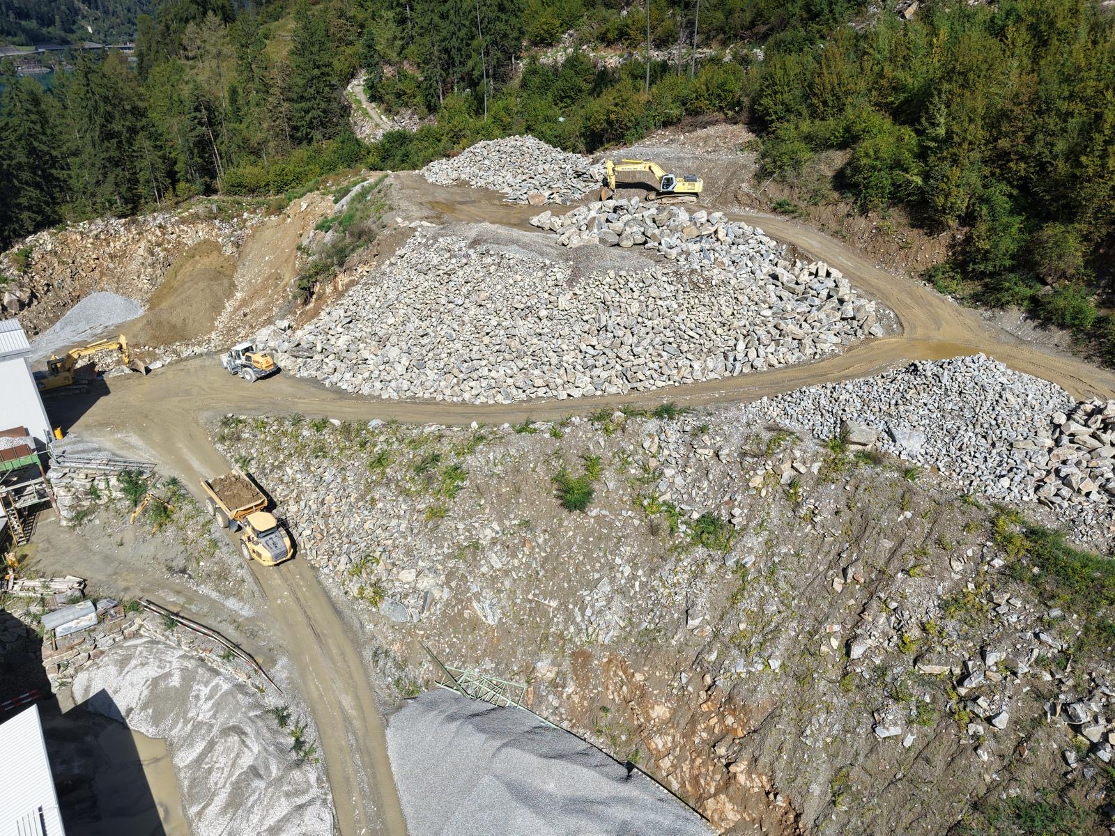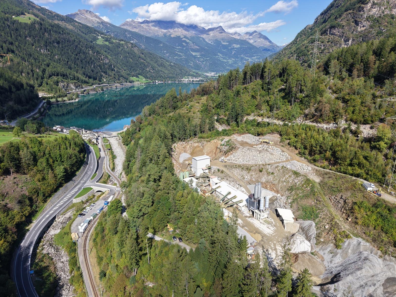 La frana del monte Giümelin ha dato si vita al lago di Poschiavo, ma ha anche portato a valle una grande quantità di sassi e materiale che garantiscono l’approvigionamento del materiale primario per l’intera vallata e non solo, da qui nasce la cava della Mota di Miralago.